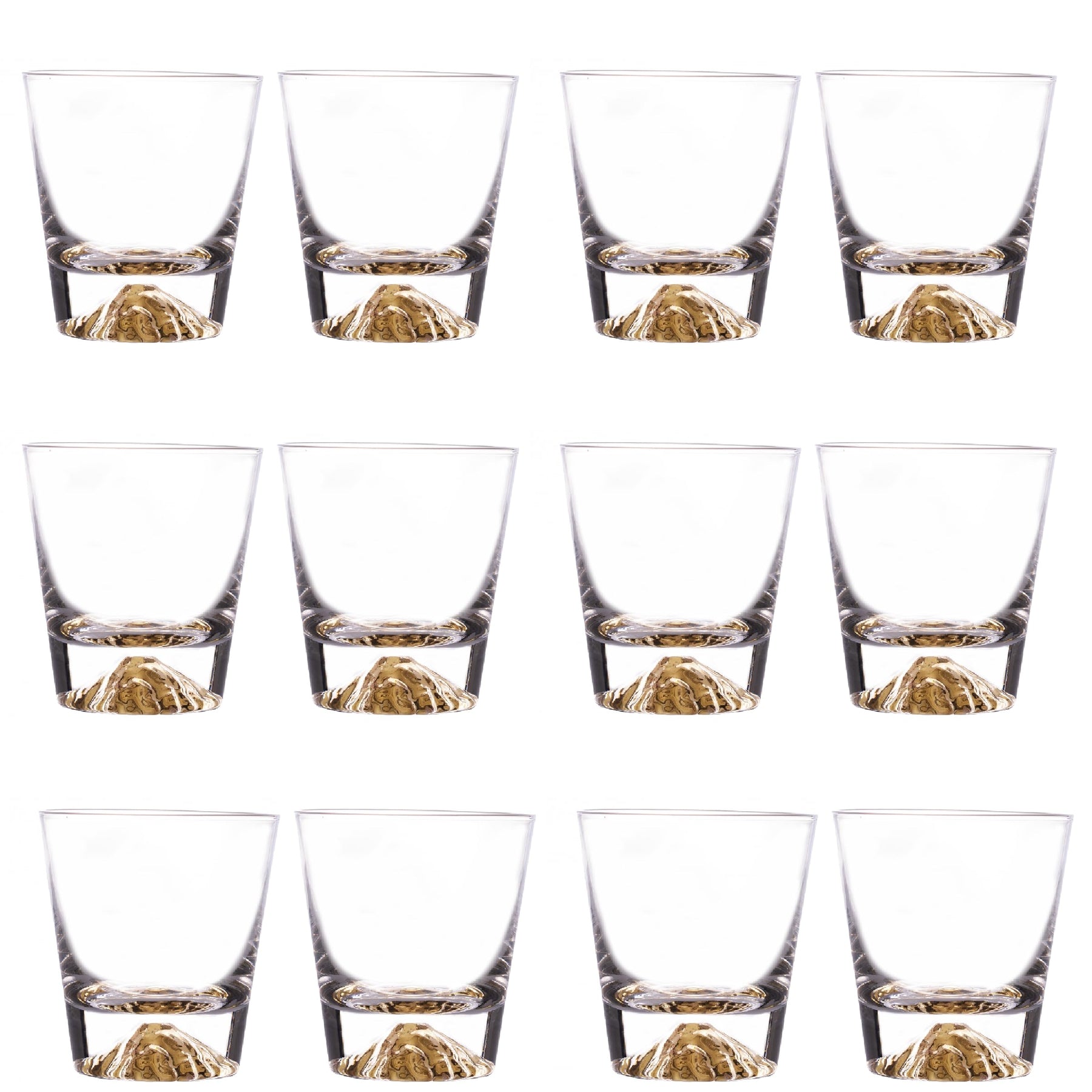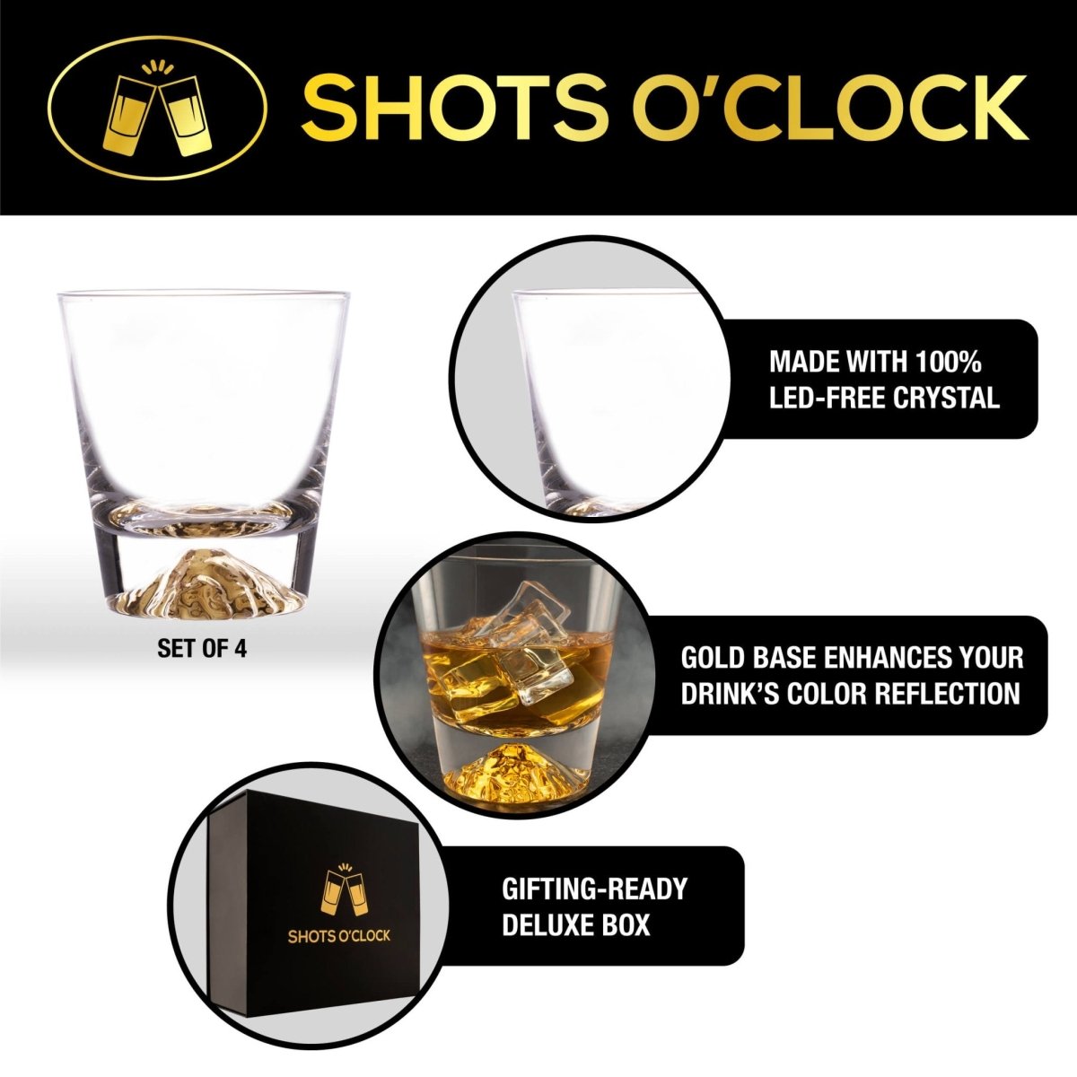 Whiskey Glasses Crystal Clear Gold Heavy Base Bourbon - Set of 4
