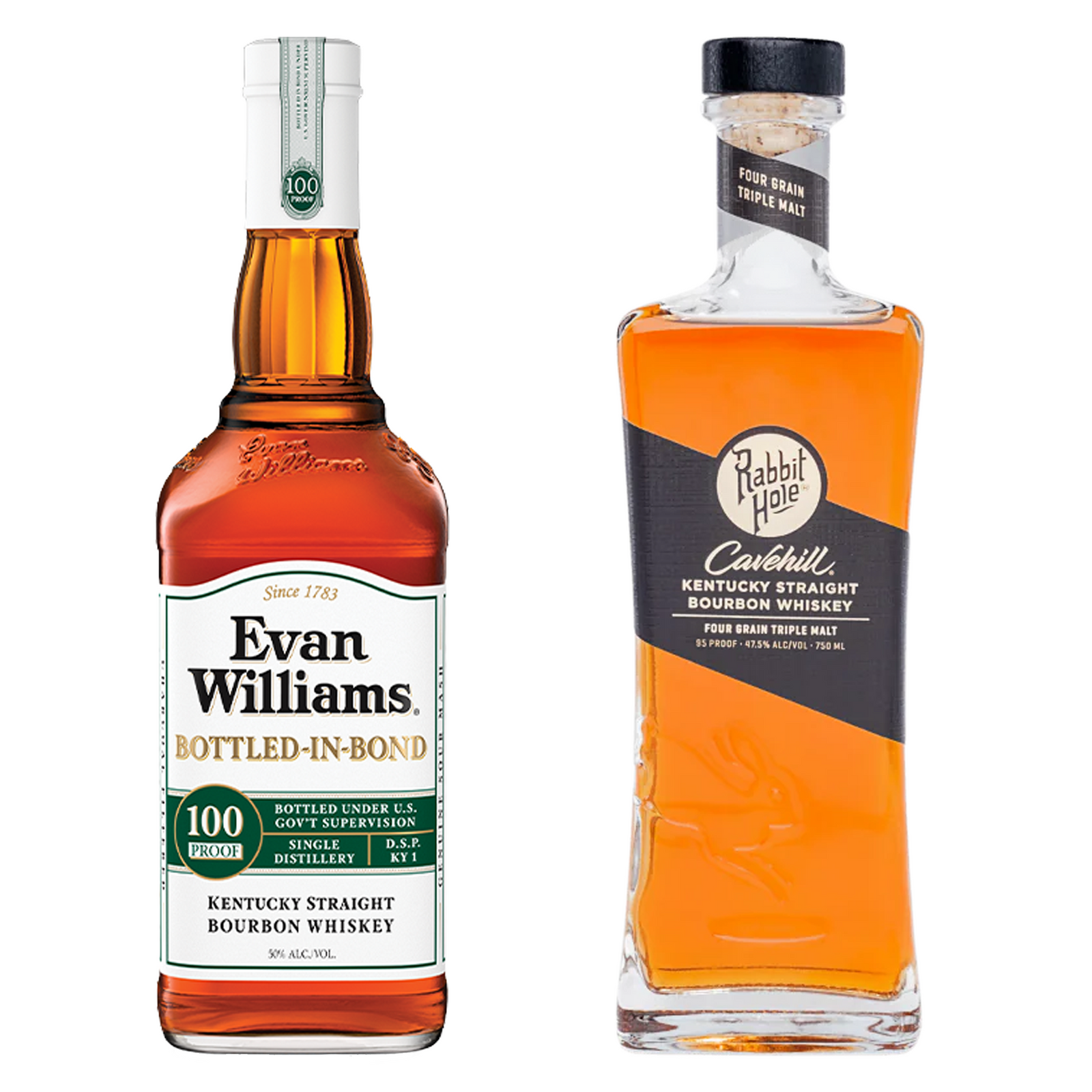 Evan Williams Straight Bourbon White Label Bottled In Bond & Rabbit Hole Straight Bourbon Cavehill Bundle