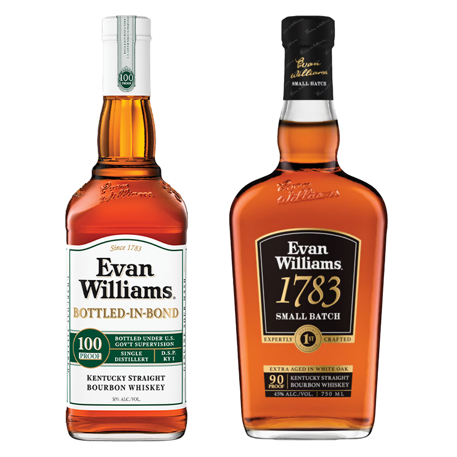 Evan Williams Straight Bourbon 1783 Small Batch & Straight Bourbon White Label Bottled In Bond Bundle