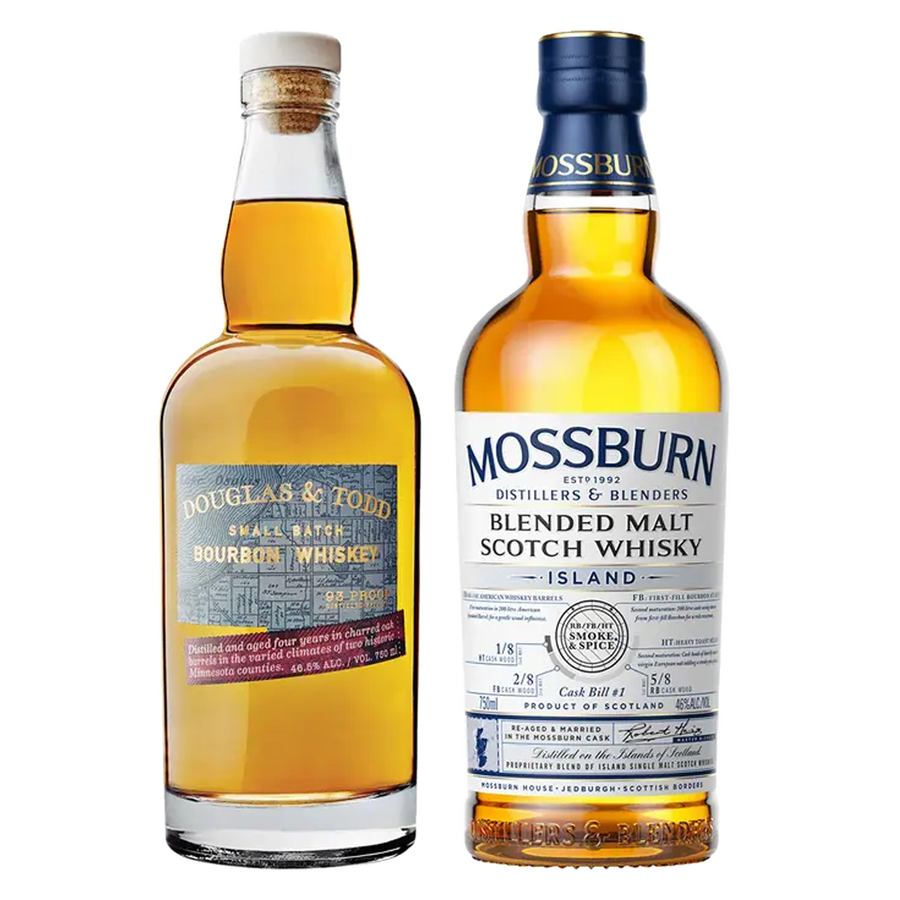 Included In This Collection: Douglas & Todd Bourbon Small Batch 4 Yr & Mossburn Blended Malt Scotch Island Bundle