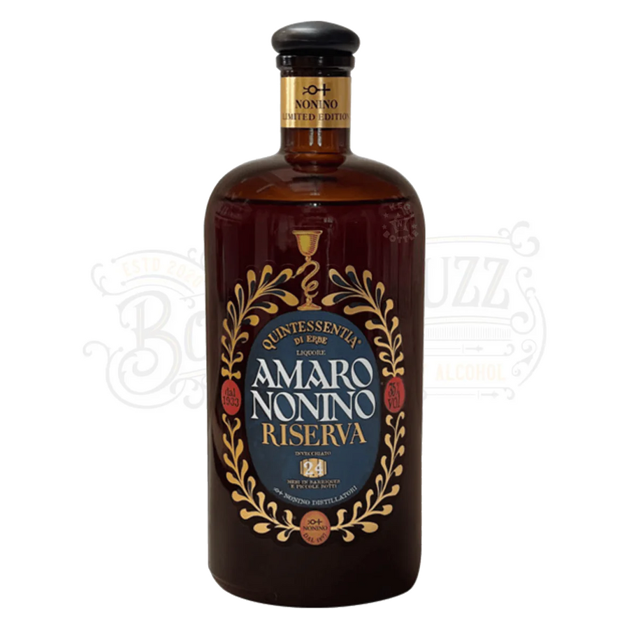 Nonino Amaro Quintessentia Riserva is a premium variation of the iconic Nonino Amaro, crafted by the Nonino distillery in Italy. Established in 1897, the distillery is renowned for its artisanal approach to distillation, employing traditional methods passed down through generations. The Riserva is made from a meticulously selected blend of over 30 herbs and botanicals, including a variety of aromatic plants, berries, and roots, each contributing to its unique flavor profile. Aged in fine, handcrafted barrels for an extended period, this version enhances the depth and richness of the original, resulting in a complex yet harmonious taste. This Riserva embodies the pinnacle of Nonino's dedication to quality and tradition, showcasing Italian craftsmanship in every drop and making it a sought-after choice for connoisseurs around the world.