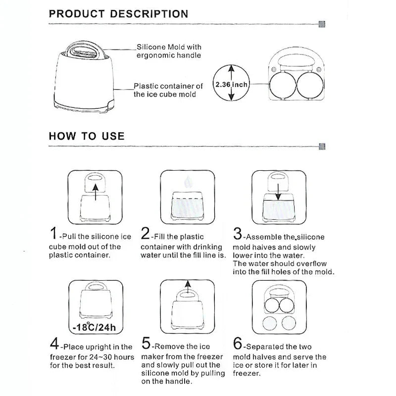 Premium Round Sphere Ice-Cube Mold Maker - 2 Crystal Clear Ice Cubes